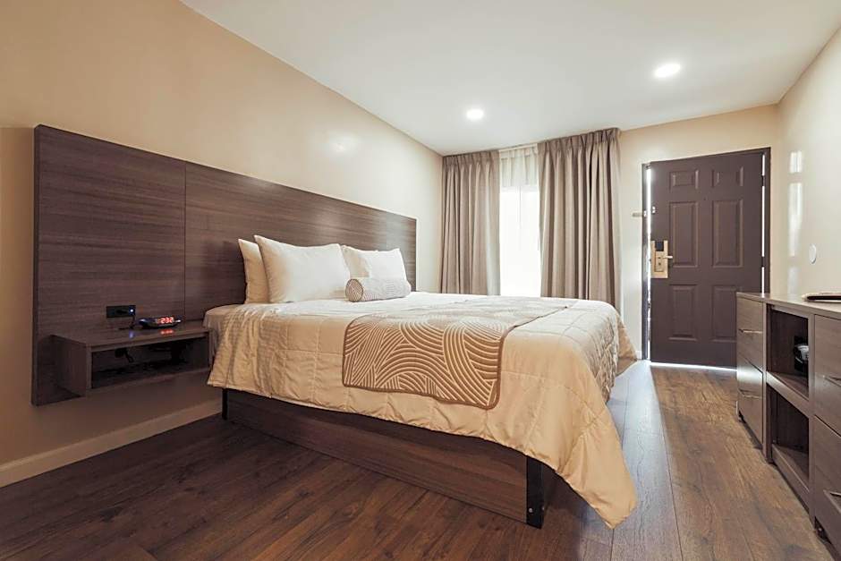 This room features a flat-screen TV, microwave, and refrigerator.